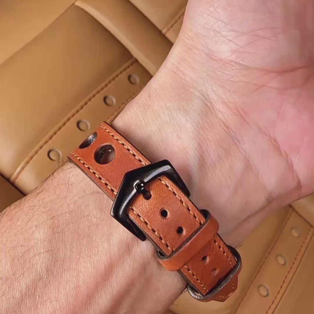 Black Racing “Rally” Leather Watch Strap – Handmade in Italy