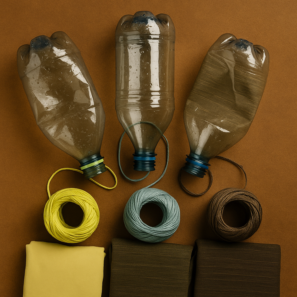 100% Made in Italy certified recycling process along its entire fully traceable supply chain, the plastic in the bottles is shredded and transformed into high quality and performance recycled polyester yarns for textile uses.